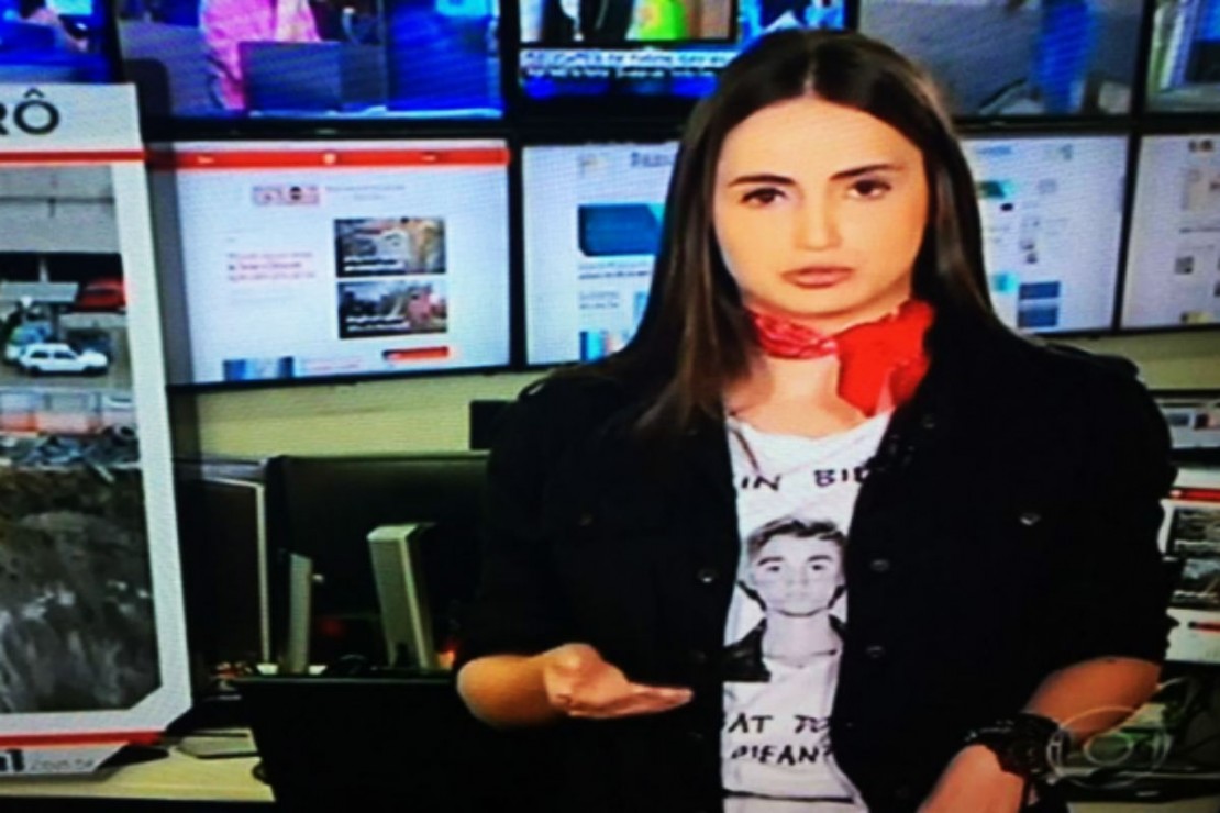 A jornalista Mari Palma, que faz o quadro G1 em Um Minuto, da Globo, apareceu na transmissão desta terça-feira, 18, com uma blusa do cantor Justin Bieber.
