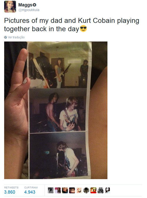 Nas imagens é possível identificar Kurt Cobain e o pai de Maggie, Tony Poukkula, que eram amigos na época.