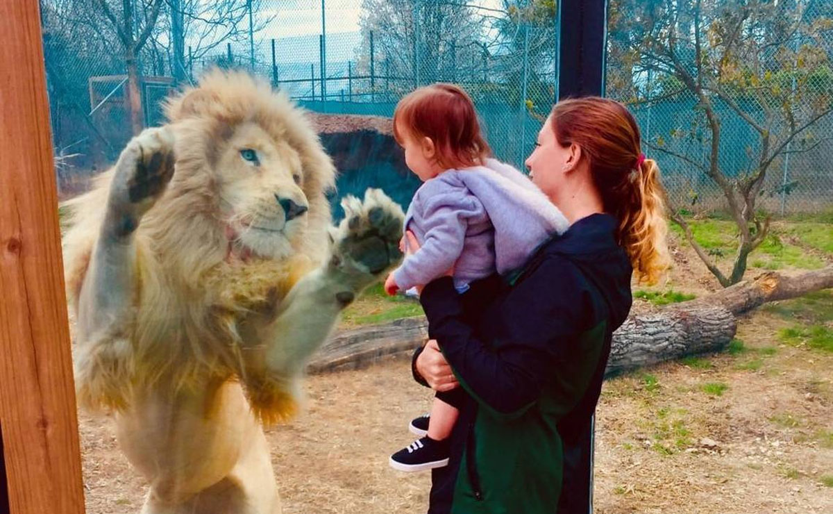 Quando a americana Caity Finley levou Josie, sua filha de pouco mais de um ano, ao Tiger World, ela nunca esperou que um leão branco ficaria obcecado pela bebê. O Tiger World é um local de preservação de espécies ameaçadas de extinção em Rockwell, na Carolina do Norte, nos Estados Unidos.