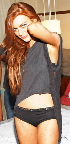 Mesmo depois de ter posado nua para a revista Playboy norte-americana, a atriz Lindsay Lohan ainda mostra sinais de que não está pronta para despir-se assim tão fácil. Durante uma cena em seu novo filme, The Canyons, ela causou transtornos para a equipe por estar com vergonha de ficar de topless. Após muita hesitação, só tirou a parte de cima da roupa quando os dez homens que estavam no set concordaram em trabalhar de roupa íntima.