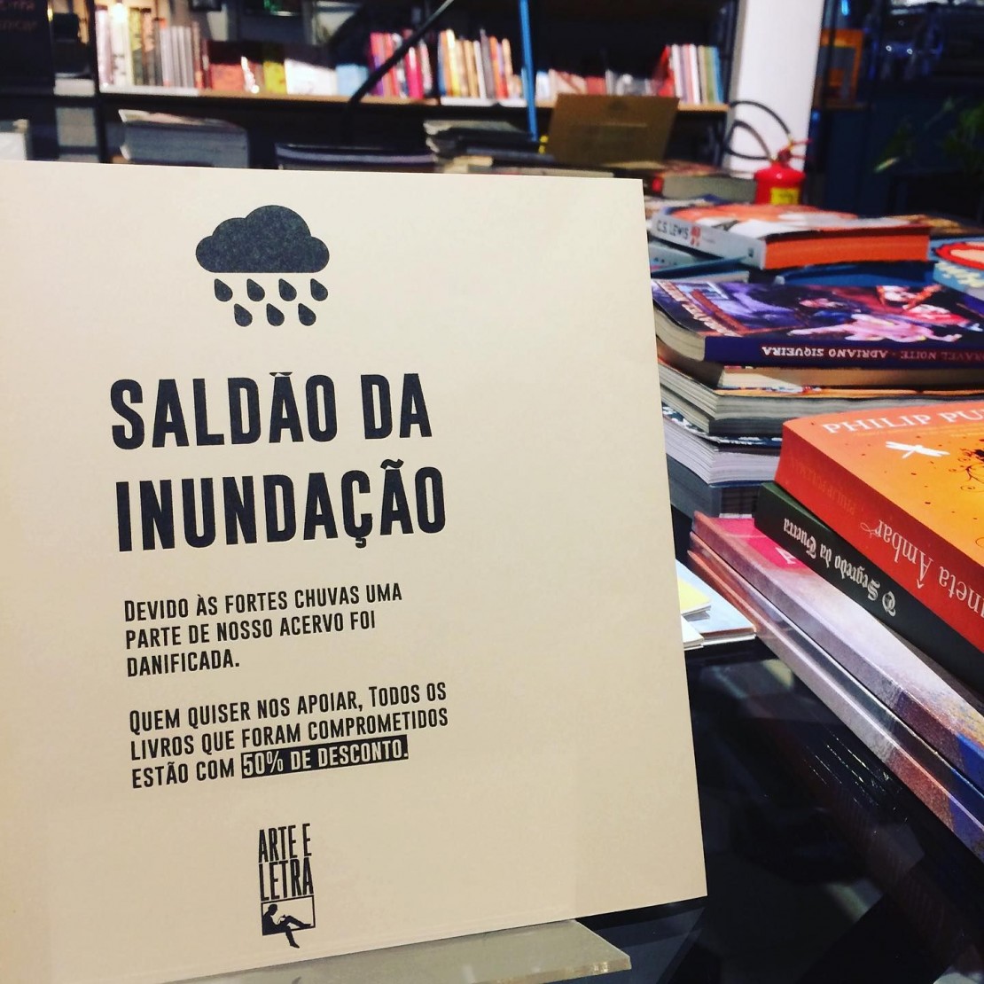 As fortes chuvas que castigaram Curitiba nesta semana forçaram os proprietários de uma livraria da cidade a realizar uma promoção relâmpago (com o perdão do trocadilho) de livros danificados pelo temporal. Até as 19h deste sábado (2) a Arte e Letra Café faz um saldão com descontos de até 50% em alguns exemplares que de alguma forma foram atingidos pela água.