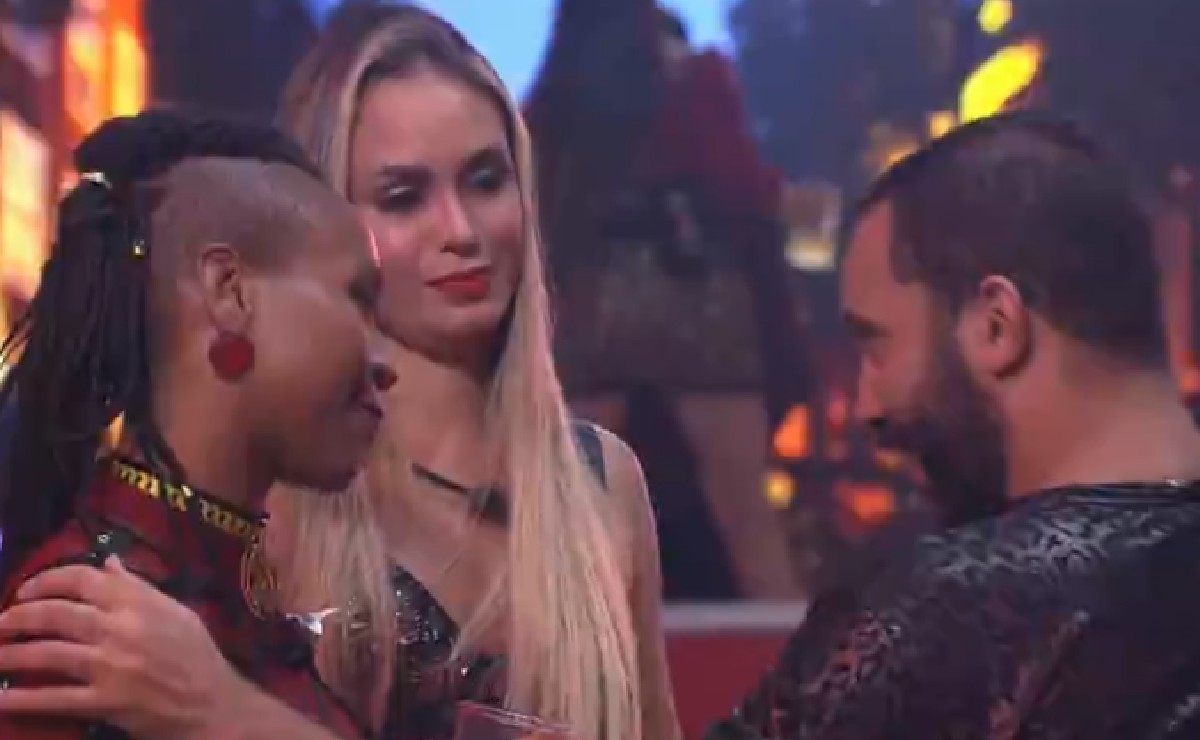 A noite começou com um selinho triplo entre Karol Conká, Sarah e Gilberto. Mesmo prometendo votar em Sarah, a cantora, que é a Líder da semana, não hesitou em beijar os colegas de confinamento.