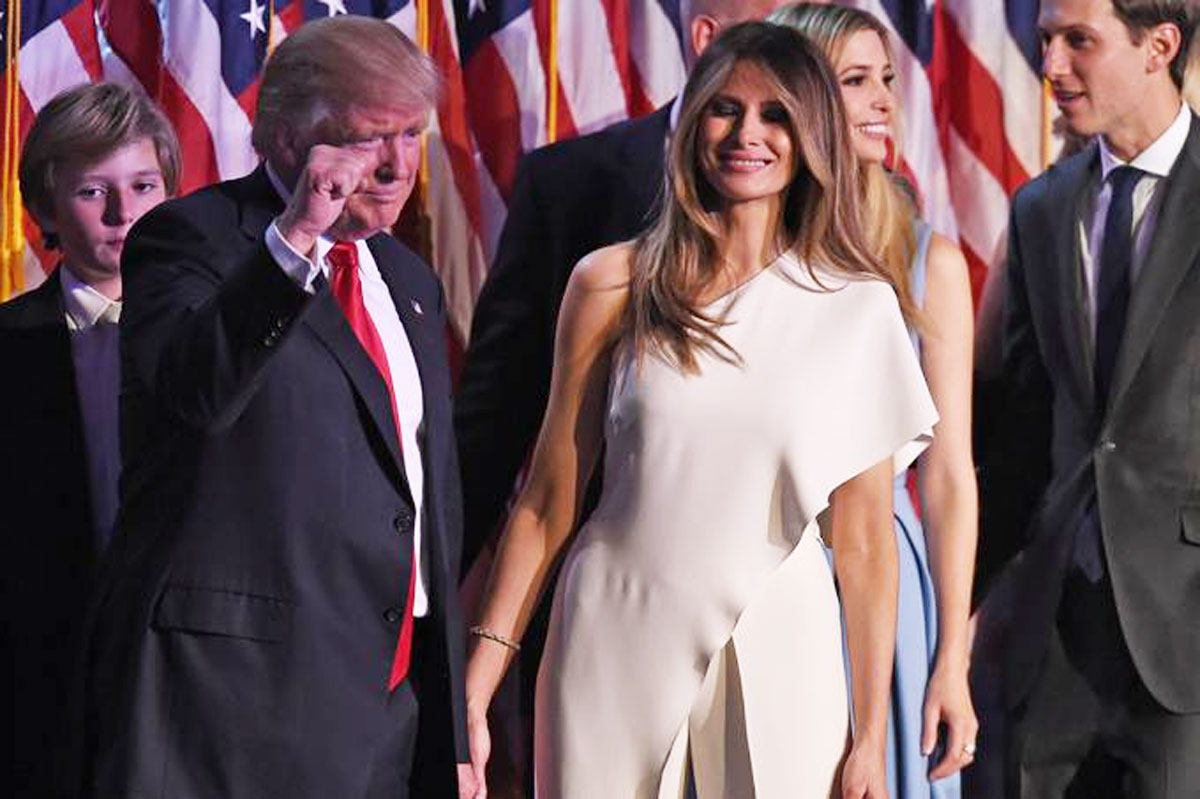 Para acompanhar o marido Donald Trump na comemoração do resultado das eleições americanas, ma madrugada desta quarta, 9, em Nova York, Melania Trump usou um macacão da marca Ralph Lauren, que custa US$ 3,9 mil, aproximadamente 12,8 mil reais.