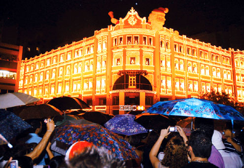 O tempo instável do início da noite de ontem não foi suficiente para espantar as cerca de 25 mil pessoas que assistiram à estreia do espetáculo natalino do HSBC Diferentes natais pelo mundo, no Palácio Avenida, no Centro de Curitiba.