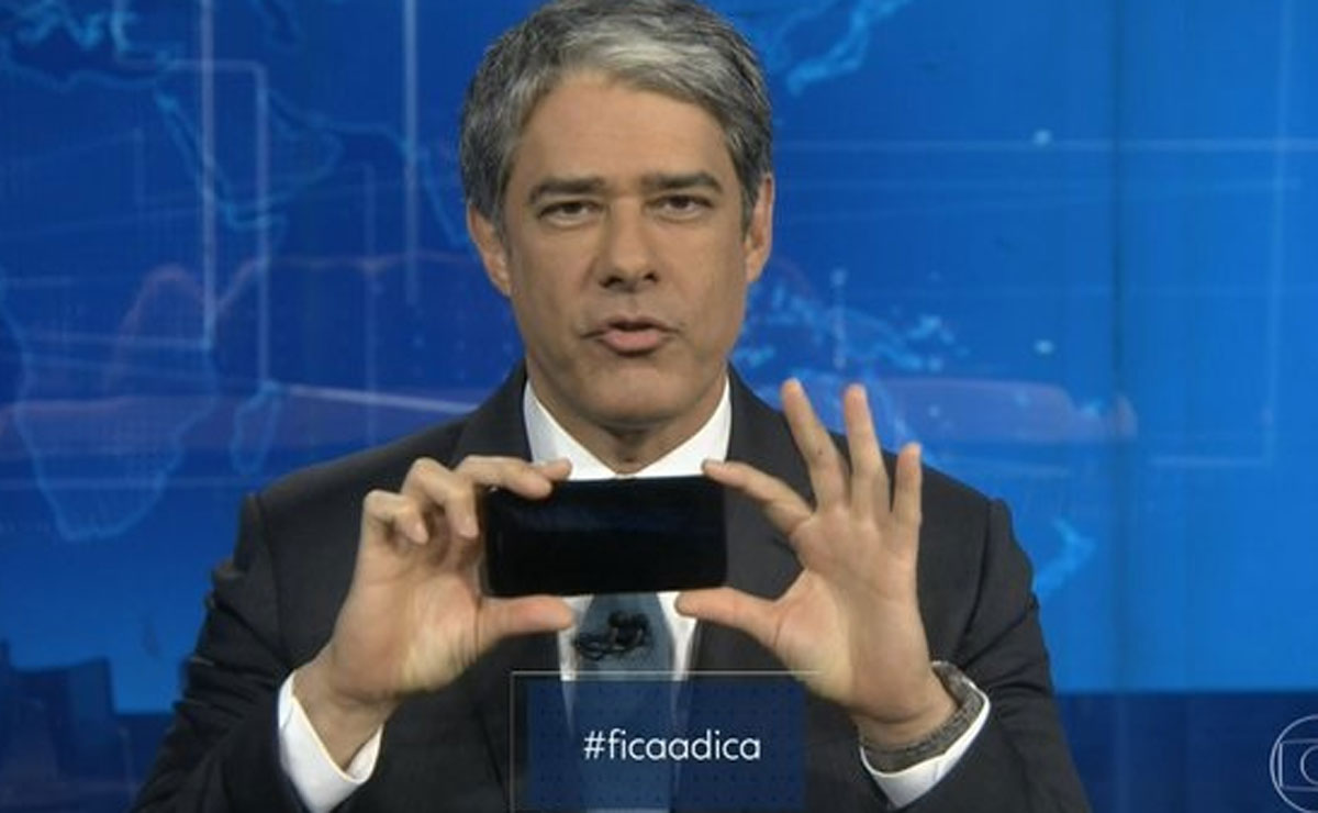 Na edição do Jornal Nacional da última quinta-feira, 21, William Bonner surpreendeu os telespectadores ao fazer um ‘tutorial’ ao vivo de como gravar vídeos no celular, pegando o gancho da reportagem que acabava de ser exibida, que tinha imagens feitas por um aparelho móvel.