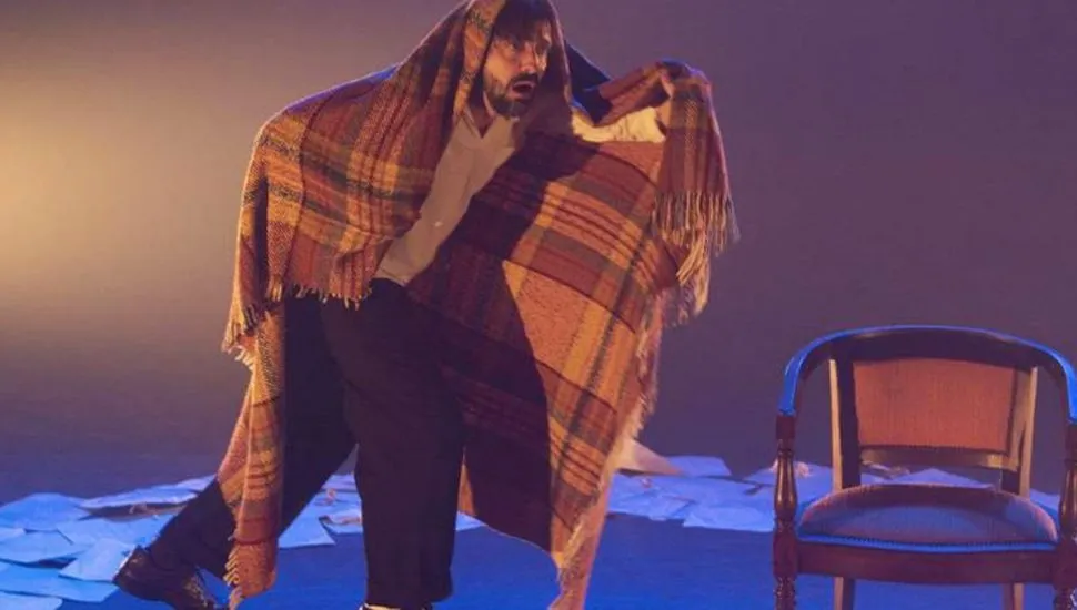 Trecho da pela "Diário de um louco", espetáculo que retrata o processo de alienação de Aksenty Ivanovich Popritchin, um funcionário público. Foto: Divulgação.