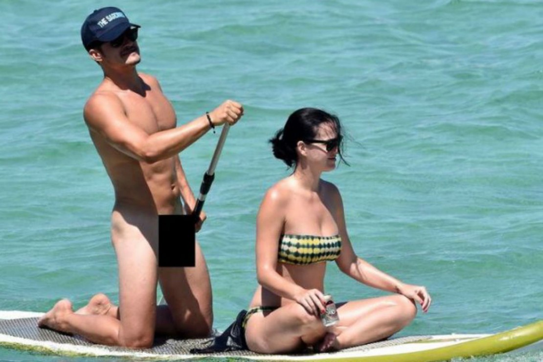 O ator Orlando Bloom foi flagrado peladão ao fazer um passeio com a cantora Katy Perry em uma praia da Itália. As fotos foram divulgadas pelo tablóide New York Daily News.