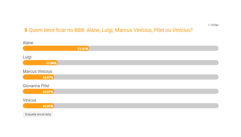 Em enquete da Tribuna, Vinicius empatou com Marcus Vinícius e Giovanna Pitel. Cada um levou 16,07%; contra 17,86% de Luigi e 33,93% de Alane.