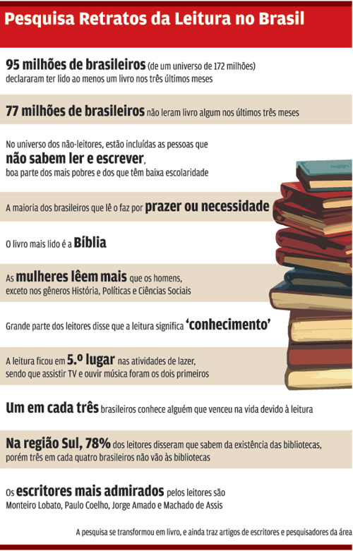 Há muito tempo as pessoas têm o mesmo discurso quando o assunto é leitura: “o brasileiro não gosta de ler”. Porém, embora o Brasil esteja longe de ser um país de leitores, as pessoas que aqui vivem estão lendo mais, sim. Pelo menos é o que apontou a pesquisa Retratos da Leitura no Brasil, feita pelo Instituto Pró Livro no ano passado. A Fundação Instituto de Pesquisas Econômicas (Fipe) também realizou uma pesquisa no ano passado, que apontou que o mercado editorial brasileiro cresceu 6,4% em 2007, em relação a 2006. Enquanto em 2007 o faturamento do ramo foi de R$ 2,28 bilhões, no ano anterior chegou a R$ 2,14 bilhões.