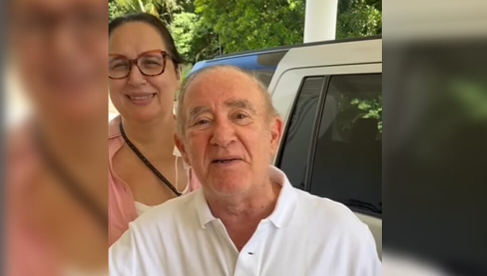 “Obrigado pelo carinho. Um beijão para todo mundo!”, disse, ao lado da mulher, Lilian Aragão.