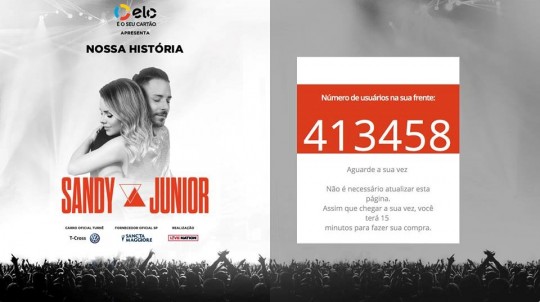 Na pré-venda, que começou na quarta-feira (20), a fila para compra online chegou a 200 mil pessoas. Nesta sexta-feira, a venda para o público em geral foi retomada e por isso a fila voltou a ser grande. Para Curitiba, onde a dupla se apresenta na Pedreira Paulo Leminski, no dia 31 de agosto, ainda restavam pelo menos 12 mil bilhetes disponíveis ao abrir a venda geral, mas em questão de horas tudo foi vendido.