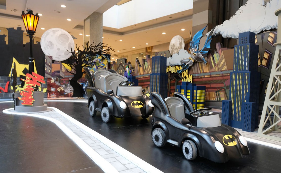 O parque, que fica instalado no shopping até o próximo dia 23, conta com atrações como: Gotham City (um mini cenário que retrata becos ruas, prédios e “minibatmóveis” para as crianças transitarem pela cidade); Batcaverna (que permite que adultos e crianças façam uma viagem com realidade aumentada pelo esconderijo do Batman); espaço “Mini Heróis” (adaptado para bebês e crianças menores); e estúdio de fotos com cenografia temática.
