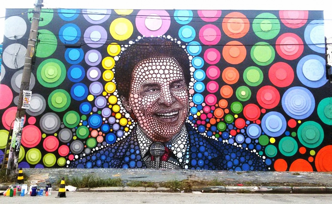 O grafiteiro Paulo Terra foi um dos convidados de Silvio Santos no programa do último domingo, 20, depois de ter homenageado o apresentador com um grafite de 27 metros de comprimento por 8 de altura na Avenida 23 de Maio, em São Paulo.