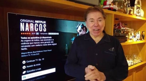 A empresa pegou carona na ação do Netflix e presenteou Silvio com uma TV ultra HD 4k, a top de linha da empresa. “Olha, é realmente uma televisão extraordinária”, disse Silvio, como se estivesse no palco de seu programa.