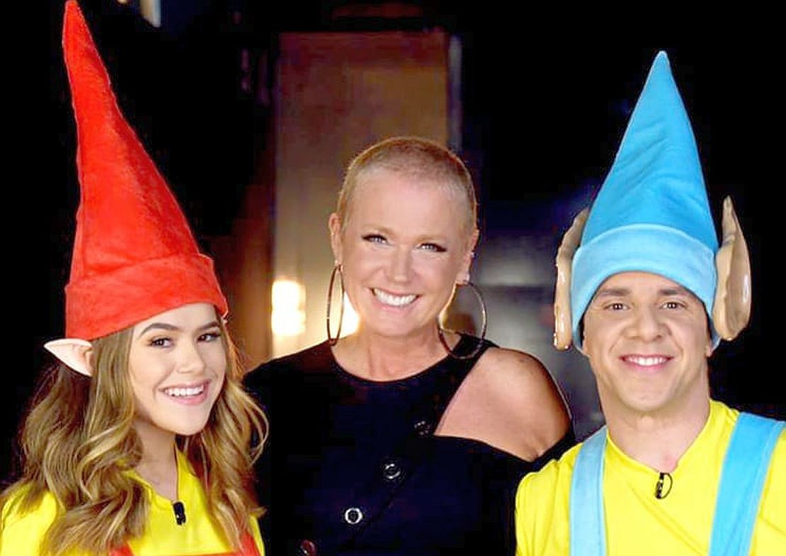 Xuxa compartilhou um registro do momento em que as duas aparecem vestidas como duendes. A atriz Larissa Manoela e o humorista Oscar Filhotambém participaram da gravação.