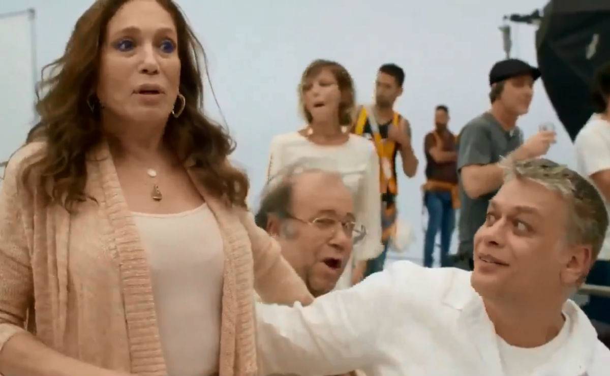 Susana Vieira está divertindo a internet nesta terça-feira (3), por ter confundido Otávio Müller com Leandro Hassum. A atriz cometeu a gafe em um vídeo de bastidores produzido pela Globo sobre a vinheta de fim de ano da emissora. “Eu estou obedecendo às ordens não dele… é do Hassum”, disse Susana apontando para Müller, enquanto abraçava Fábio Assunção.