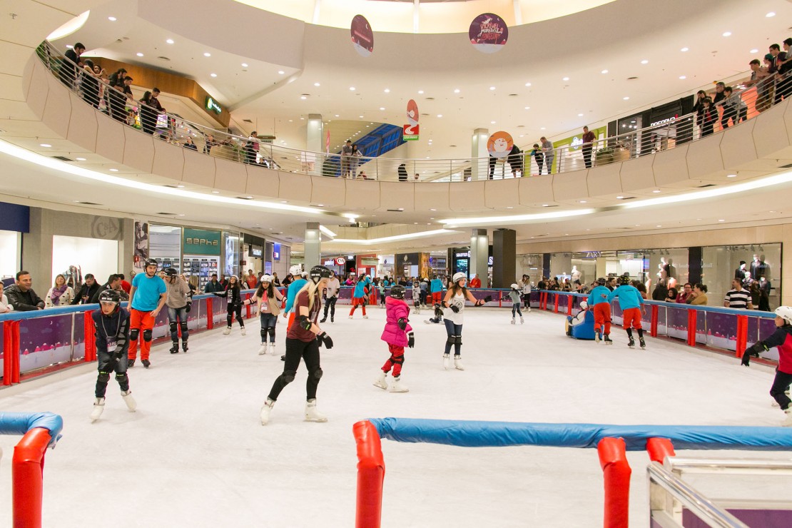 A pista, construída na praça central do shopping, tem mais de 430 metros quadrados de gelo e capacidade para receber até 70 patinadores simultaneamente. As sessões são de 30 ou 60 minutos de patinação. As crianças, de 2 a 5 anos de idade, podem brincar na pista passeando no Big Ice Car (trenó).