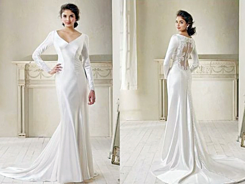 Com mangas longas, um surpreendente decote rendado nas costas e uma longa cauda, o modelo promete ser outro hit lançado pela adaptação da história de Stephenie Meyer – como aconteceu com o anel de noivado vintage, lançado no filme anterior. O vestido custa US$ 799.