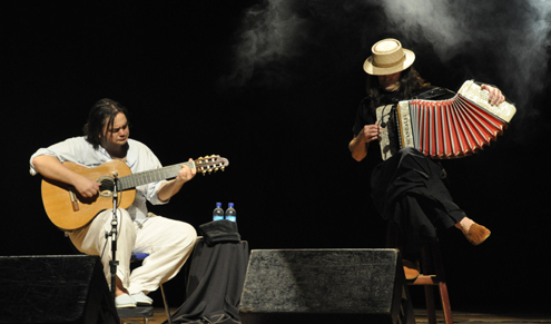Com um programa que na sua maioria é definido em rodas de mate ou fruto de noitadas musicais, o espetáculo reúne temas clássicos, músicas gaúchas e de fronteira, costuradas com levadas de choro em releituras inéditas. Os improvisos desconcertantes dos dois músicos desfilam perante a platéia, executados com harmonia e virtuosismo, mas com a naturalidade somente reservada aos grandes artistas.