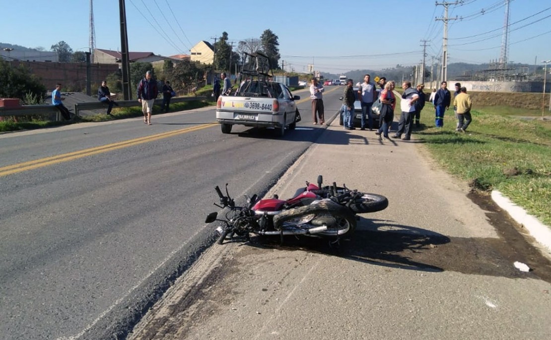 O primeiro ocorreu no bairro Abranches. Foi uma colisão entre uma caminhonete e uma moto preta. Saldo negativo para Enilson Ernesto Correa, condutor da motociclista que fraturou a costela.