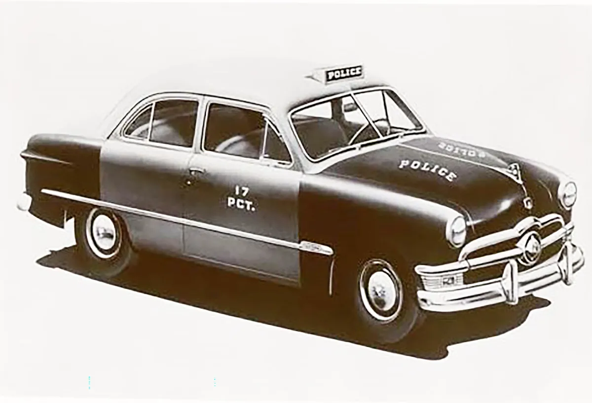 Em 1950, a Ford foi a primeira fabricante a oferecer um veículo com pacote policial. Ele trazia três opções de motor: o Ford V8 especial, o Ford V8 100 HP e o Ford 95 HP Six, além de inúmeras melhorias de engenharia e design, incluindo itens especiais de conforto, durabilidade, velocidade e segurança para as rigorosas necessidades do trabalho policial.