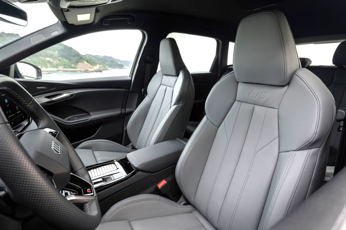 Já a versão topo de linha Q6 e-tron Performance Black quattro oferece, além dos itens da versão Performance, uma lista de equipamentos ainda mais extensa. O modelo agrega, entre os itens de conforto, acabamento das soleiras das portas com logo S em alumínio e iluminadas; bancos dianteiros esportivos em combinação couro/couro sintético e inscrição S; pacote de luzes ambiente Plus (interativas, que auxiliam o carro na interação com os ocupantes); pedaleiras em aço inoxidável; e volante em couro perfurado, aplanado (cima e baixo), multifuncional com shift-paddles, aquecido e com inscrição “S” como parte do pacote S line interior.
