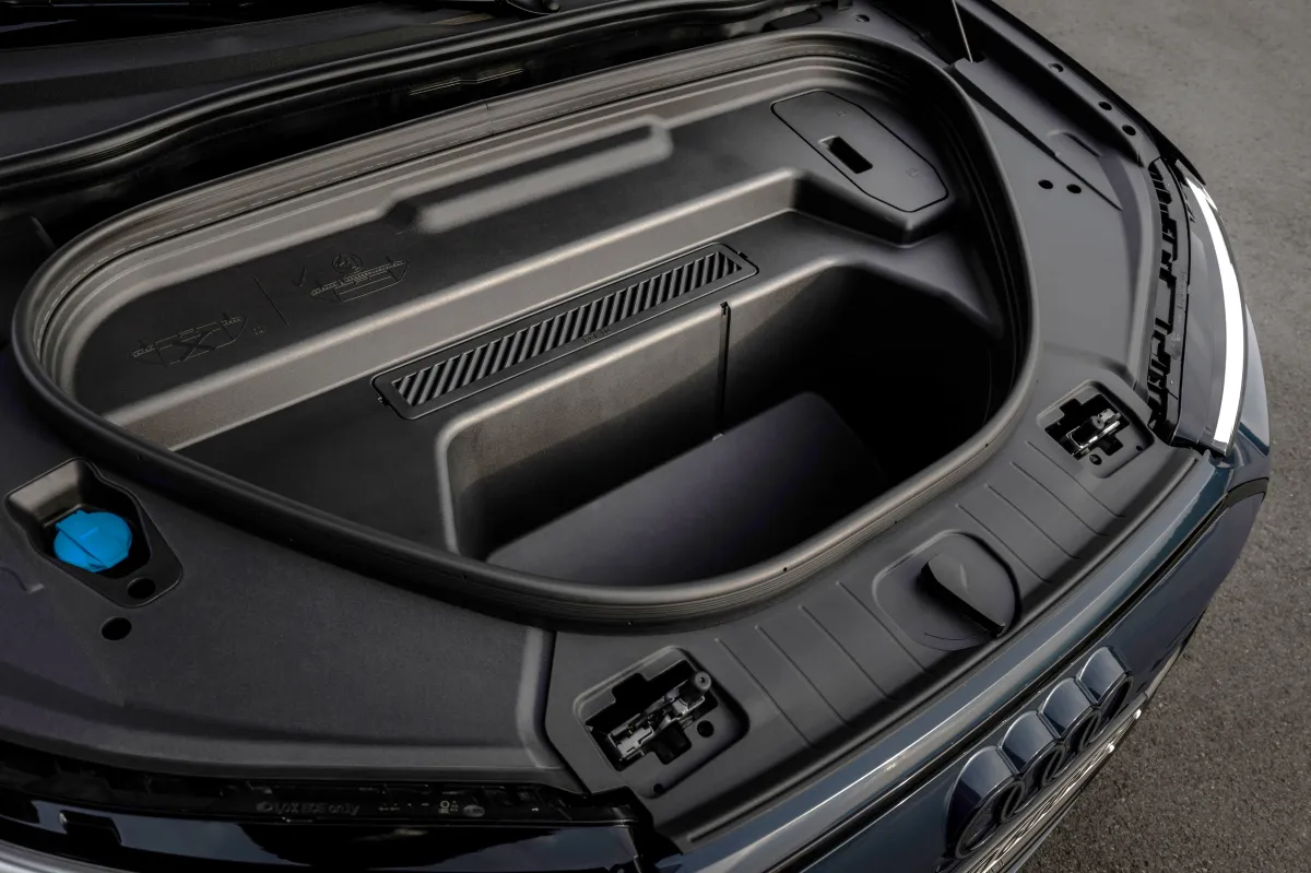 O console central possui dois porta-copos, uma bandeja e duas entradas para carregamento de smartphones. Como é característico dos veículos elétricos sem túnel central, há espaço extra para as pernas, priorizando a mobilidade dos ocupantes. O porta-malas oferece 526 litros – quando os assentos traseiros são rebatidos, o espaço sobe para até 1.529 litros. Os bancos traseiros rebatem-se individualmente (40:20:40) e há um espaço adicional de 64 litros sob o capô dianteiro.