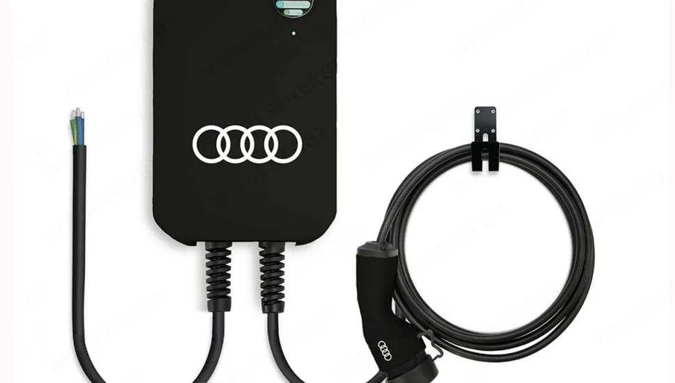 Os preços dos pacotes são: R$ 2.449,00 (Carregador portátil de até 7kW); R$ 3.599,00 (Carregador Wallbox de até 7kW); R$ 4.799,00 (Infraestrutura elétrica de até 30 metros para carregadores de até 7kW); R$ 7.099,00 (Infraestrutura elétrica até 30 metros mais carregador portátil de até 7 kW); e R$ 8.299,00 (Infraestrutura elétrica até 30 metros mais carregador Wallbox de até 7 kW). (Fotos: Audi/GreenV/Divulgação).