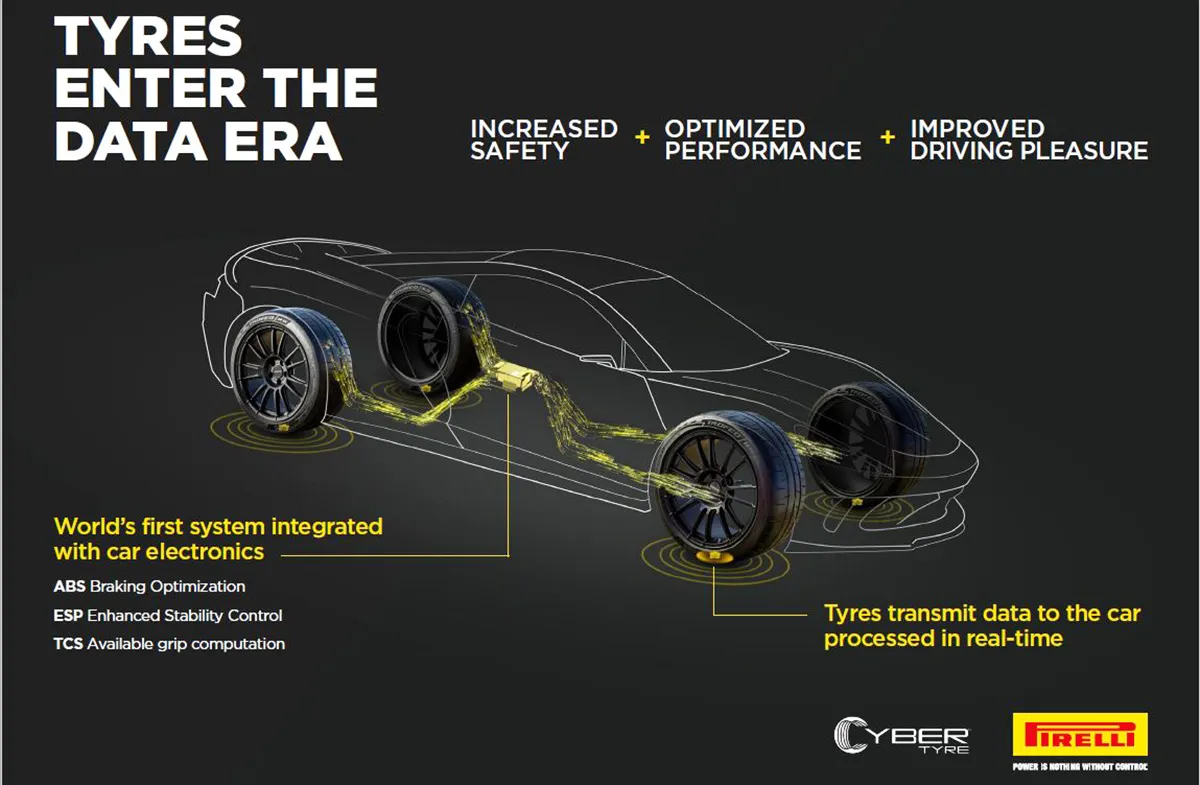 O Pirelli Cyber Tire é o primeiro sistema do mundo baseado em pneus com sensores integrados, que coletam dados e os transmitem ao veículo para serem processados em tempo real. A Bosch já desenvolveu um aplicativo ESP especificamente adaptado aos pneus Pirelli, em um projeto conjunto inicial com a fabricante de hipercarros Pagani Automobili. A tecnologia “Pirelli Cyber Tyre” no Pagani Utopia Roadster transmite informações importantes sobre os pneus para a unidade de controle do ESP. Isso permite o uso ideal das propriedades individuais e do desempenho dos pneus, proporcionando maior segurança e condições de direção personalizadas.