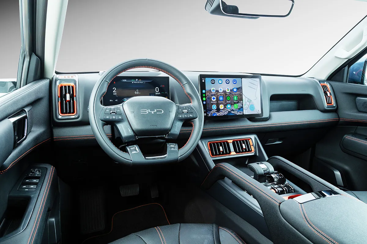 A nova plataforma DMO é a base da Shark. Mais uma inovação da BYD que combina o estilo robusto do off-road com recursos de segurança e conforto. Em termos de tecnologia, ela já começa se destacando por ser a única em todo o mercado a oferecer o head-up display, que projeta a velocidade, navegação e informações do ADAS, dentre outras relevantes ao motorista no vidro da frente, proporcionando mais conforto e segurança sem tirar o olho da estrada seja na terra ou no asfalto. O painel da caminhonete oferece um ecossistema totalmente integrado, possibilitando aos motoristas, através de comandos de voz, gerenciar de maneira intuitiva os modos de condução, ajustar as configurações de ar-condicionado e executar diversas tarefas, aumentando o conforto e a segurança ao dirigir. Ainda é possível gerenciar remotamente a caminhonete por meio do aplicativo BYD, que oferece diversas funções do carro a serem feitas à distância, como ligar o veículo, acionar os faróis, ativar o ar-condicionado, destrancar as portas, ajustar a ventilação e o aquecimento dos assentos, além de outras funcionalidades.