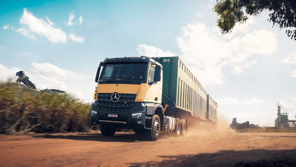 Mais uma novidade para 2024 da Mercedes-Benz Caminhões, foi na Linha Arocs de extrapesados para operações off-road ganha um novo membro. Chega ao mercado o Arocs 3353 S 6×4 com motor OM 471 LA de 530 cavalos. Este novo cavalo mecânico atende à Lei que autorizou a circulação de composições de até 91 ton de PBTC para o segmento canavieiro. O modelo apresenta um CMT de até 150 ton. Além da elevada potência, este Arocs se destaca pelo freio-motor de alta performance de 580 cv.