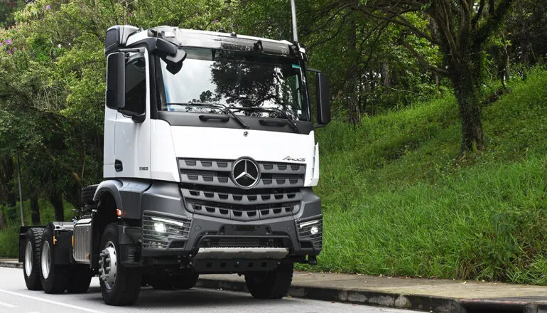 A linha de caminhões extrapesados Arocs da Mercedes-Benz conquistou sucesso no Brasil como basculante 8×4 nas severas atividades fora de estrada da mineração. No ano passado, o elevado patamar de força, robustez e produtividade se estendeu a uma família de veículos off-road 6×4 nas versões plataforma, basculante e cavalo mecânico.