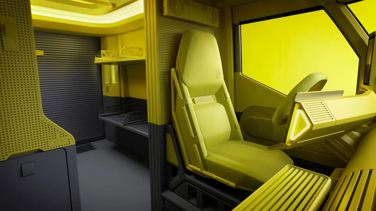 Pintada em um tom de amarelo cítrico, a área de cockpit é formada por um único banco dedicado ao motorista. O uso do assento dobrável do lado direito foi previsto apenas para fins de treinamento. Instalado sobre um estrado, o banco do condutor oferece uma posição de dirigir confortável e segura. O condutor só precisa girar para a direita para ficar de pé, sem esforço desnecessário do tronco ou das pernas. Ele pode ficar totalmente de pé desde que sua estatura seja inferior a 1,90m. O estrado comporta 7 gavetas para acomodar diferentes objetos, sendo 3 do lado esquerdo e 4 do lado direito.
