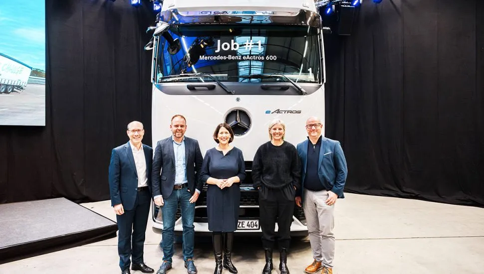 O portfólio de veículos eletrificados da Daimler Truck está crescendo. A Companhia celebrou na última sexta-feira, em 22 de novembro, na fábrica da Mercedes-Benz de Wörth, na Alemanha, o início da produção em série do caminhão elétrico à bateria Mercedes-Benz eActros 600 para longas distâncias. Esse momento marcante foi realizado na presença de Karin Rådström, CEO da Daimler Truck, e de Daniela Schmitt, Ministra de Estado da Economia, Transportes, Agricultura e Viticultura da Renânia-Palatinado. Também estavam presentes: Jürgen Distl, Chefe de Operações da Mercedes-Benz Trucks; Andreas Bachhofer, Chefe da Fábrica de Wörth e de Produção da Mercedes-Benz Trucks; e Michael Brecht, que preside o Grupo e o Conselho Geral da Daimler Truck.