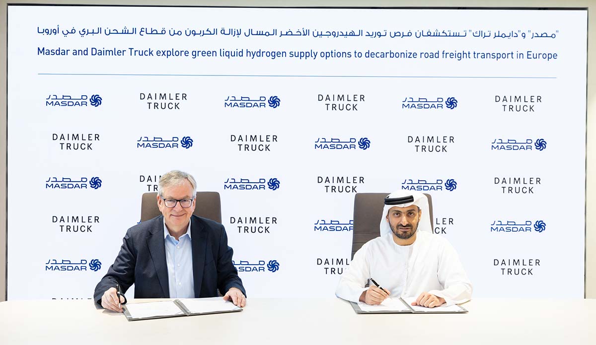A empresa Abu Dhabi Future Energy Company PJSC – Masdar, a potência em energia limpa dos Emirados Árabes e a Daimler Truck Holding AG (“Daimler Truck”), uma das fabricantes líderes mundiais de veículos comerciais, assinaram um protocolo de intenções (“MoU”) para explorar a viabilidade de exportações de hidrogênio líquido ecologicamente correto de Abu Dhabi (EAU) para a Europa até 2030.