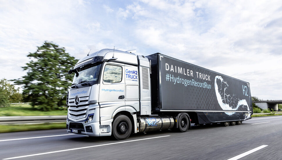 Em setembro de 2023, a Daimler Truck demonstrou, com sucesso, que a tecnologia da célula de combustível a hidrogênio pode ser a solução para descarbonizar os transportes rodoviários de longa distância. Um protótipo do caminhão Mercedes-Benz GenH2 concluiu um percurso de 1.047 km de distância com uma carga de hidrogênio líquido. A empresa visa introduzir a versão de série do GenH2 na segunda metade da década.