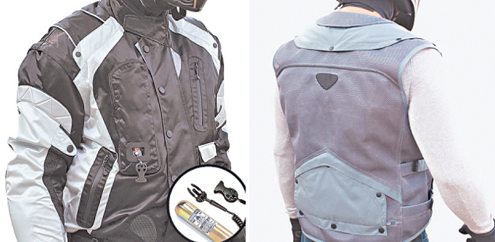 Esteticamente, a jaqueta parece com qualquer outro acessório do tipo, podendo ser de couro, náilon e cordura; é impermeável e tem dispositivos refletivos. As bolsas de ar ficam sob o tecido e só são notadas quando inflam. O equipamento funciona da seguinte maneira: um cabo é preso à jaqueta e à moto. Se o piloto for arremessado do veículo em um acidente, por exemplo, o cabo se desprenderá da vestimenta e irá acionar um cilindro de gás carbônico que deflagrará os airbags em cerca de 30 segundos. De acordo com os fabricantes, é necessário um puxão equivalente a, mais ou menos, 30 kg para o cilindro ser ativado, impedindo que as bolsas sejam acionadas por engano. O equipamento protege partes do corpo, como peito, costas, coluna cervical, abdômen e cóccix.