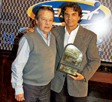 | Surpreso, Zeca Melo recebeu o troféu das mãos de Maurício Gugelmin. |