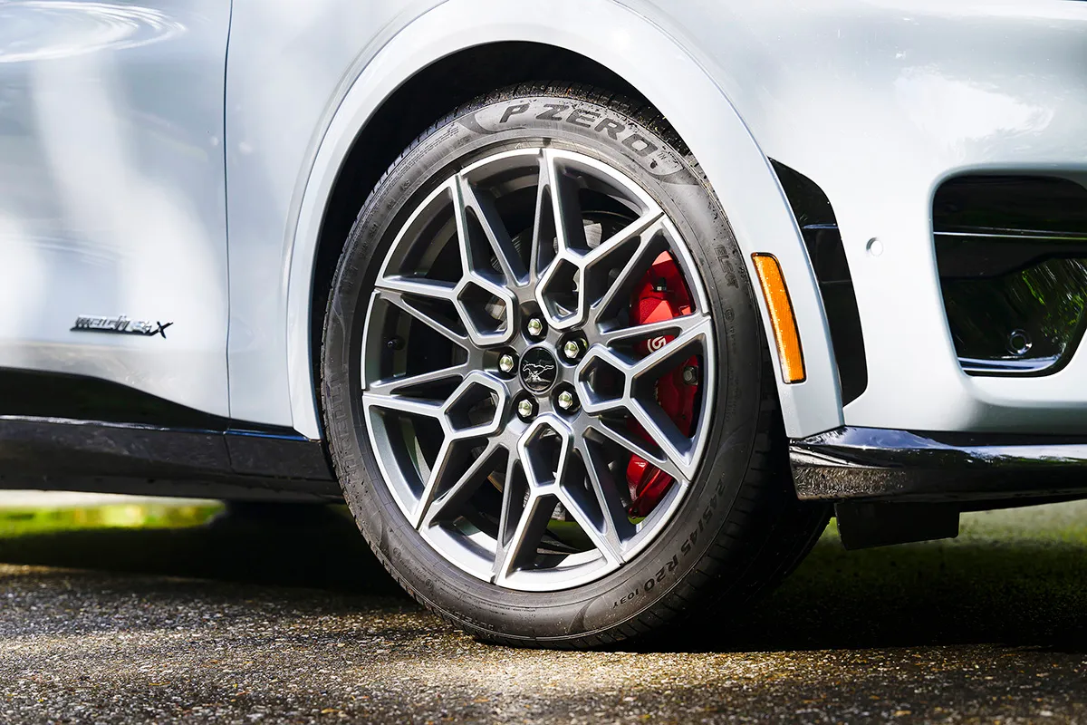 Os dois motores elétricos de 487 cv, com tração integral, dão ao Mustang Mach-E um desempenho de respeito: ele acelera de 0 a 100 km/h em 3,7 segundos. Amortecedores MagneRide, freios Brembo de alta performance, três modos de condução e rodas de 20 polegadas com pneus 245/45 R20 de baixa resistência à rolagem são outros itens que contribuem para sua dirigibilidade empolgante e segura.