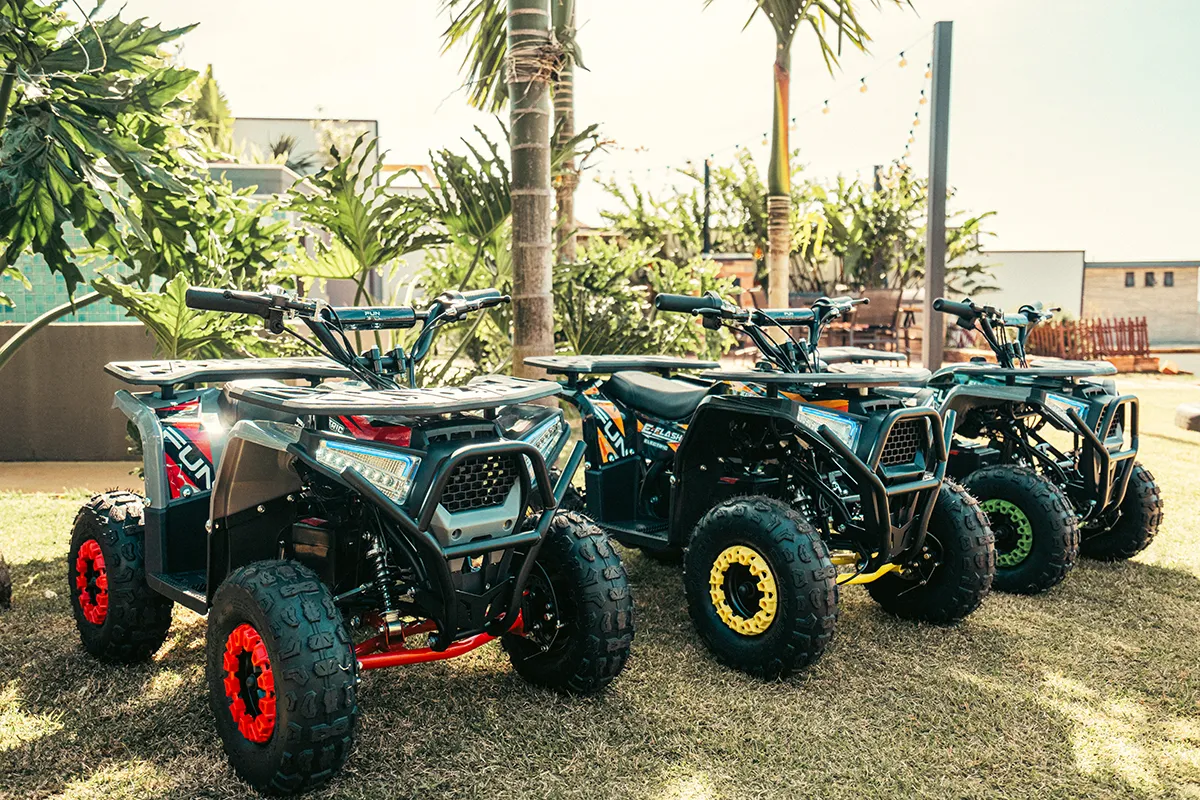 Os quadriciclos são ideais para brincadeiras e diversão, adaptando-se a diversos tipos de terrenos e trilhas off-road. Kasaki comenta: “O E-Flash tem se tornado popular entre as crianças, proporcionando uma experiência longe das telas, desenvolvendo novas habilidades, criando amizades e aproveitando o espaço ao ar livre”.