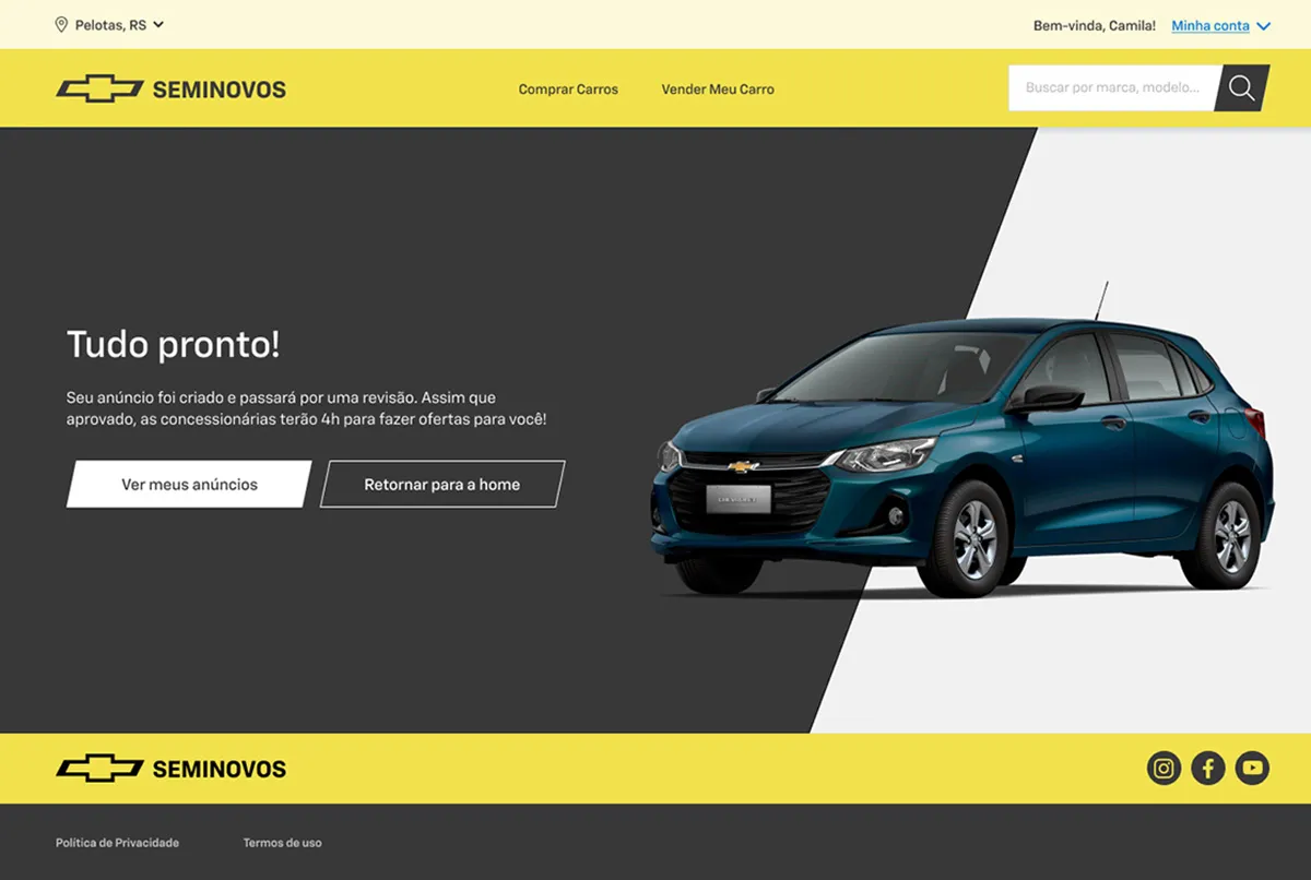 A plataforma também tem a facilidade de o cliente simular um plano de financiamento de acordo com seu orçamento. Após escolher o veículo, o cliente terá acesso à todos os produtos financeiros oferecidos pela Chevrolet Serviços Financeiros. “Além de oferecer veículos de todas as marcas, temos o objetivo comum de tornar a aquisição de um seminovo acessível para todos”, garante Casagrande.