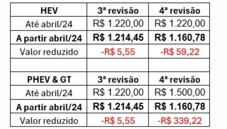 Os modelos PHEV e GT apresentam uma queda no valor ainda maior. As duas primeiras revisões também custam R$ 920. A terceira e quarta somadas proporcionam um desconto de quase R$ 350.