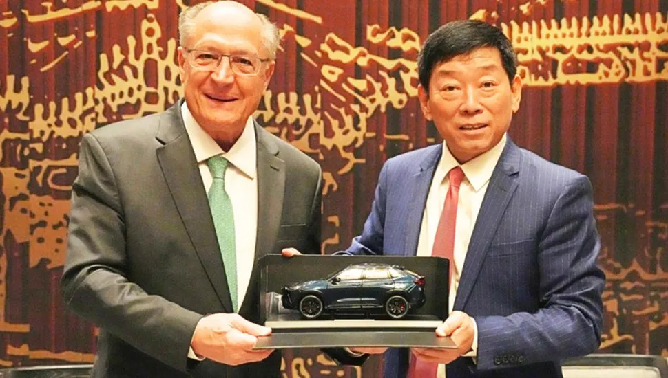 Fundador e chairman da GWM, Jack Wey reuniu-se com o vice-presidente do Brasil, Geraldo Alckmin, em evento realizado em Pequim, na China. Durante o encontro, Wey revelou em primeira mão qual o primeiro modelo que será produzido na fábrica da GWM em Iracemápolis (SP): o SUV híbrido Haval H6.