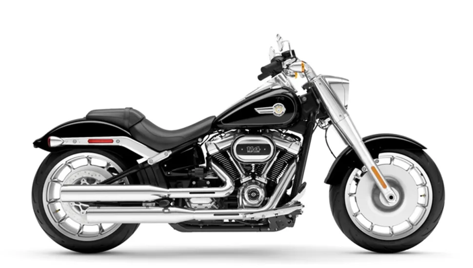 – Fat Boy® 114: um ícone da Harley-Davidson, que domina as estradas com sua presença imponente e inconfundível. Equipada com rodas em alumínio fundido e se destaca pelo design único do farol dianteiro;