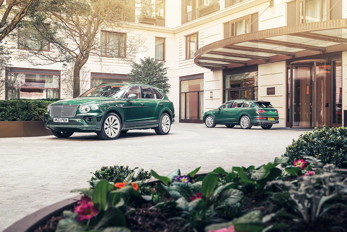 Os quatro novos Bentley Bentaygas híbridos do Peninsula London proporcionam aos hóspedes um transporte luxuoso e silencioso pela cidade. Esses são os primeiros SUVs híbridos de luxo a se juntarem à frota Peninsula e seu alcance EV de até 45km permite que a maioria das viagens de hóspedes seja concluída sem qualquer emissão de CO2. A carroceria verde Peninsula desses carros abriga assentos excepcionalmente luxuosos, com encostos acolchoados personalizados, mesas folheadas, telas de entretenimento individuais, sistemas de áudio Signature, iluminação ambiente Bentley e extras especiais como tomadas USB para carregar dispositivos.