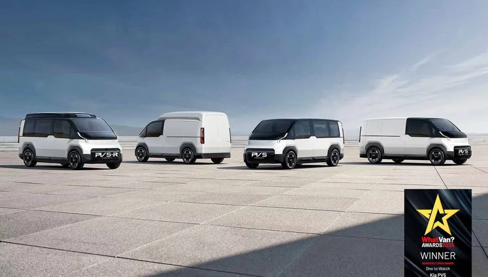 A Kia PV5 ganhou o prêmio ‘One to Watch’ da “What Van? 2025”, antes da revelação do design de produção e do lançamento final da primeira van elétrica da Kia no próximo ano.