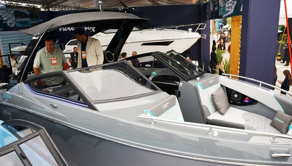 A versatilidade da Focker 262 GTO é outro ponto de destaque. Adaptada para uma variedade de atividades aquáticas, a lancha está equipada com recursos de alta tecnologia de navegação que atendem a diferentes necessidades, seja para a prática de esportes aquáticos ou simplesmente para desfrutar de um dia ao sol. A conveniência da proa aberta e do banheiro a bordo proporcionam ainda mais conforto durante os passeios. (Foto: Fibrafort/Divulgação).