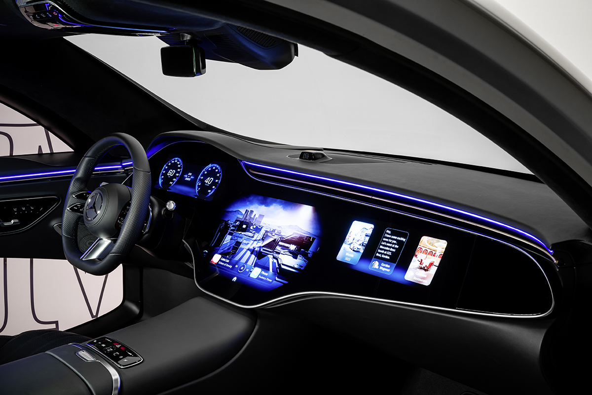 A Mercedes-Benz está usando o palco da CES para anunciar novas plataformas e parcerias que aprimorarão seu serviço de jogos. Uma colaboração com o primeiro serviço de streaming de jogos retrô do mundo, Antstream Arcade, integra o jogo em nuvem no automóvel. Além disso, a Mercedes-Benz tem sua própria visão para jogos imersivos, que é mostrada no novo Classe E. Este jogo futurista de corrida combina o poder de processamento do MBUX, junto com sensores e atuadores internos do veículo.
