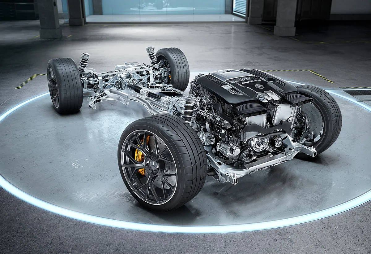 O conhecido motor V8 biturbo de 4.0 litros é combinado com motor síncrono de imã permanente (PSM), uma bateria de alto desempenho desenvolvida em Affalterbach e o sistema de tração integral variável totalmente variável AMG Performance 4MATIC+. A potência e o torque máximo do sistema proporcionam a aceleração de zero a 100 km/h em três segundos. A entrega de energia só termina em uma velocidade máxima limitada eletronicamente de 250 km/h.