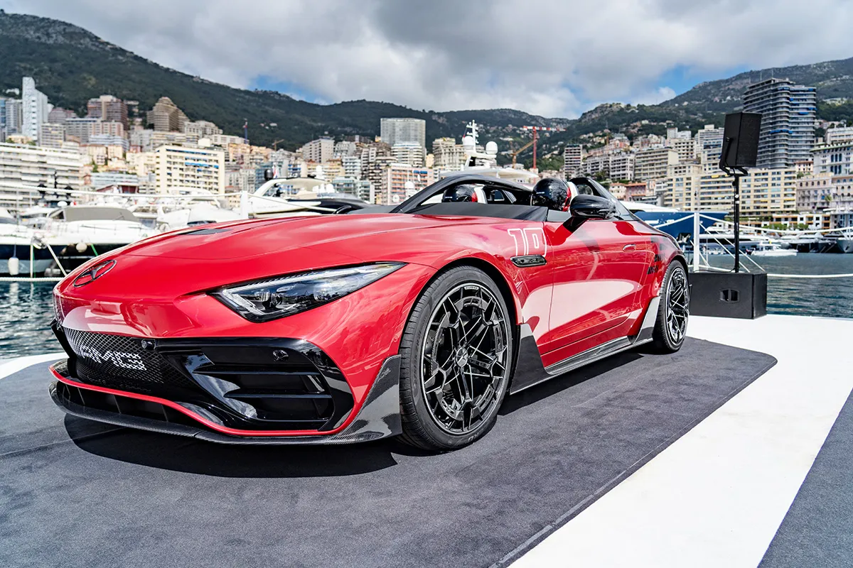 O produto-conceito Mercedes-AMG PureSpeed será o grande destaque da marca durante o Grande Prêmio de Mônaco de Fórmula 1 nesse final de semana. O design radical de um automóvel de alta performance aberto, de dois lugares, sem teto ou para-brisa é uma homenagem ao automobilismo de competição. O modelo também é uma prévia da futura série limitada “Mercedes-Benz Mythos”. A estreia mundial do conceito aconteceu em um ponto flutuante no porto do principado de Mônaco e impressionou a todos, incluindo os pilotos da equipe Mercedes-AMG Petronas F1, Lewis Hamilton e George Russell.